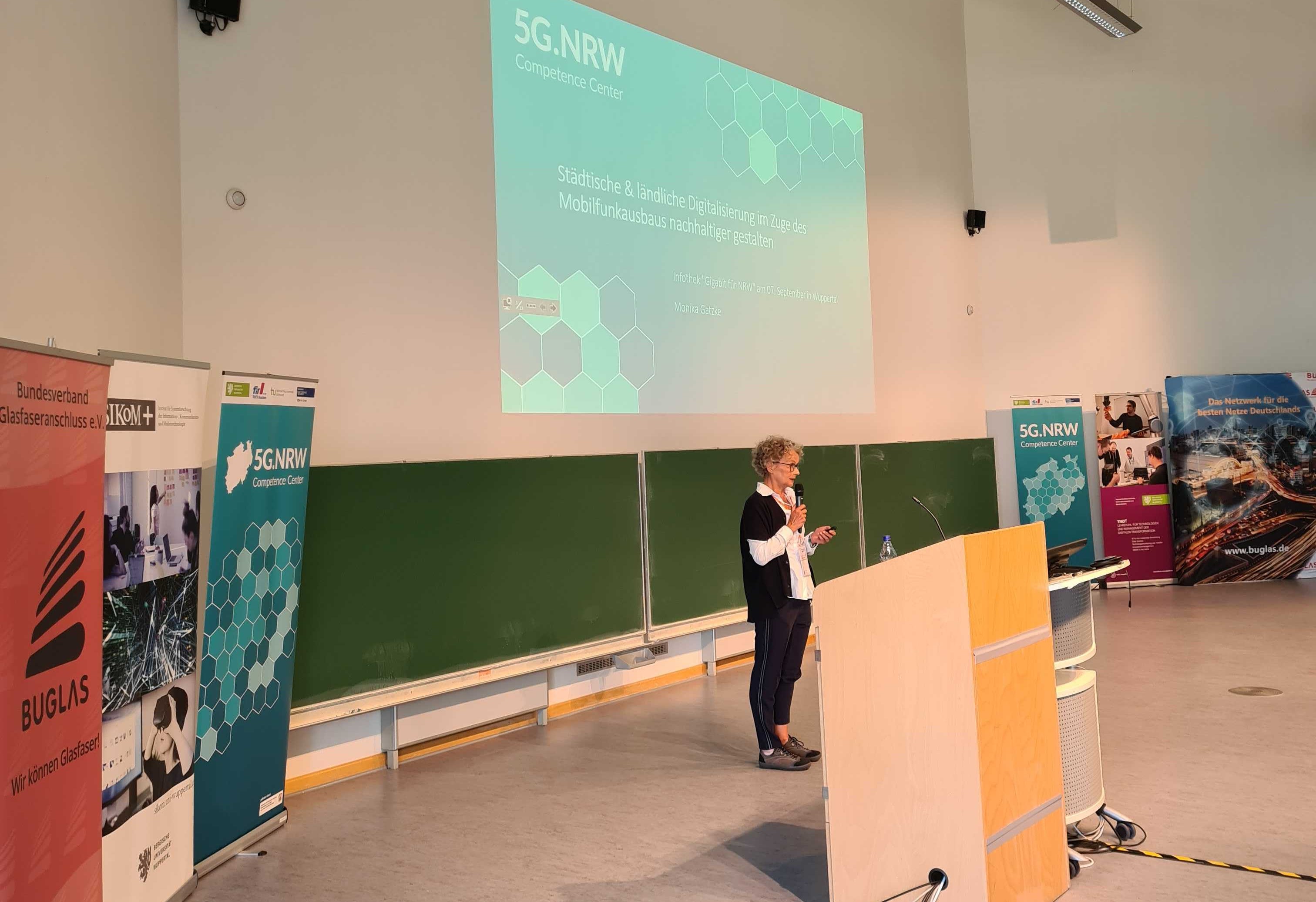 Monika Gatzke ist Geschäftsführerin des Competence Center 5G.NRW. Bei der Infothek sprach die Expertin von der Bergischen Uni über die städtische sowie ländliche Digitalisierung im Zuge des Mobilfunkausbaus. // Foto CC.5GNRW