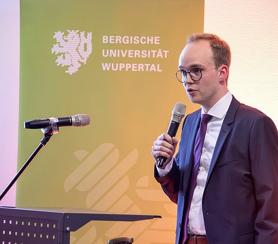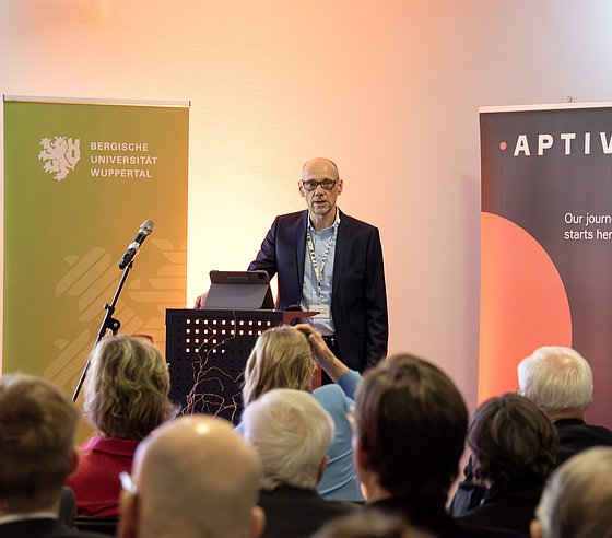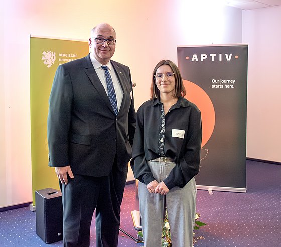 Auch Mut hätten die Preistragenden bewiesen, indem sie sich unter anderem komplexen Fragestellungen widmeten, nannte APTIV-Geschäftsführer Matthias Laumann eine weitere Zutat. „Den brauchen wir alle, um gemeinsam die Zukunft zu gestalten“, fuhr er fort. Die Nähe zwischen Wirtschaft und Wissenschaft sei dabei von hoher Bedeutung. Sein Unternehmen ist dafür ein gutes Beispiel: Auf das, was APTIV entwickle und produziere, zahle auch die Kooperation mit der Bergischen Universität ein. Gemeinsame Forschungsprojekte oder die Nachwuchsförderung im Rahmen des Deutschlandstipendiums sind dafür nur zwei Beispiele.