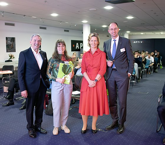 Promotionspreisträgerin Dr. Vera Dinslage (2.v.l.) mit Preisstifter Thomas Meyer (li.) und den FABU-Vorsitzenden Felicia Ullrich (2.v.r.) und Dr. Jens Schmidt (re.).