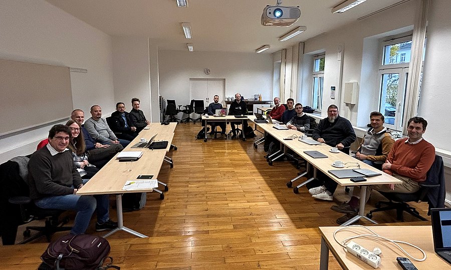 Austausch der Forschungsgruppe um Prof. Dr. Francesco Knechtli (li.) bei einem gemeinsamen Workshop in Wuppertal. // Foto BUW