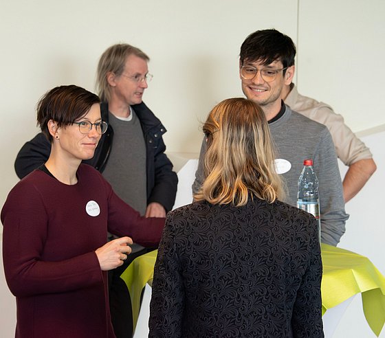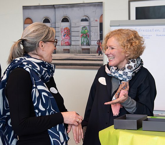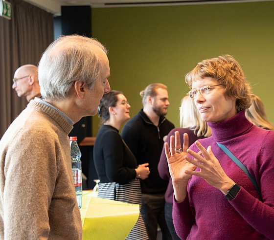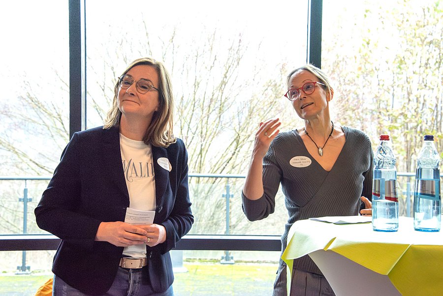Die Sprecherinnen des Aktivitätsfeldes, Prof. Dr. Elke Söbbeke (links). Prof. Dr. Marei Fetzer (rechts), Prof. Dr. Claudia Bohrmann-Linde und Prof. Dr. Miriam Kuckuck (beide nicht im Bild), begrüßten die Anwesenden zum Forschungslunch im Bergischen Zimmer. // Fotos Katja Bischof
