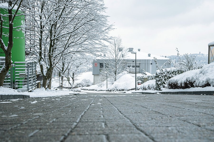 Der Winterdienst der Bergischen Universität ist im Einsatz, um die zentralen Wege und Flächen auf dem Campus so schnell wie möglich zu räumen und zu streuen. Dennoch kann es insbesondere in den frühen Morgen- und Vormittagsstunden zu glatten Stellen kommen. Bewegen Sie sich daher vorsichtig auf dem Campus und nutzen Sie nach Möglichkeit die freigeräumten Wege.