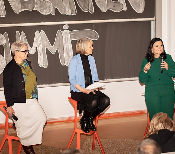 Die Talkrunde mit Prof. Dr. Christine Volkmann (Mitte) und den beiden Staatssekretärinnen Gitta Connemann (re.) und Silke Krebs (li.). // Foto Josephine Behr