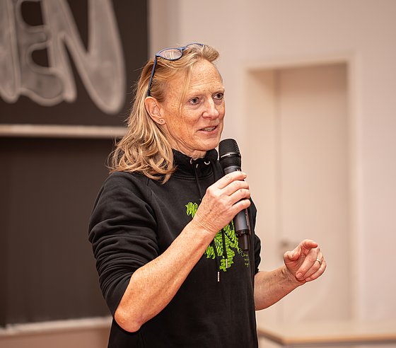 Ihre Gründungserfahrung nutzt sie außerdem, um anderen Tipps zu geben. Einer davon: früh anfangen, die eigene Expertise sichtbar zu machen, weil Menschen Produkte von Menschen kaufen. „Eine Marke nachhaltig aufzubauen heißt, ihr ein Gesicht zu geben – das gibt der Marke Kraft“, so Polina Sergeeva. Sie zeigte die langfristige Perspektive einer Gründung auf und verglich den Weg mit einem Marathon, bei dem jedoch niemand wisse, wann die nächste Verpflegungsstation, geschweige denn das Ziel, komme. Nicht alles auf dem Gründungsweg sei geradlinig und könne geplant werden. Dennoch lautete ihr Fazit, dass sich Gründungsinteressierte davon nicht abschrecken lassen sollten. Gründen sei ein vielschichtiger Prozess. Ein letzter Tipp war dann auch: „Wir wissen zwar nicht genau, wann das Ziel erreicht ist. Wichtig ist, dass wir laufen – und weitermachen.“