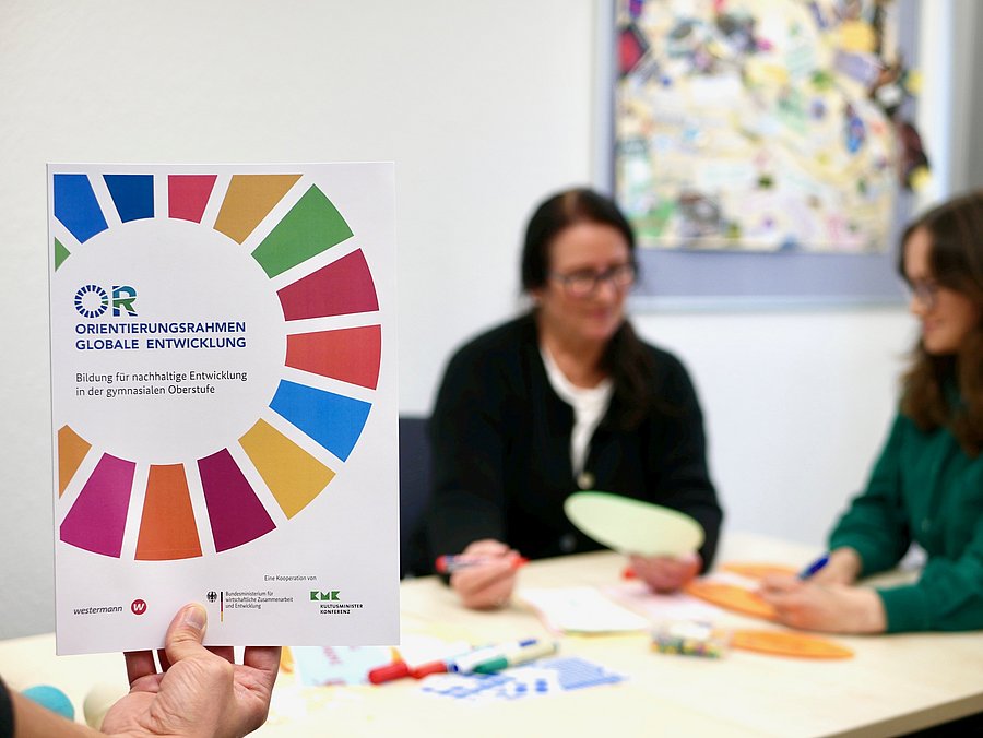 Wie kann Bildung für nachhaltige Entwicklung in der gymnasialen Oberstufe aussehen? Diese Frage beantwortet der Orientierungsrahmen Globale Entwicklung auf stolzen 805 Seiten. Mehr als 180 Expert*innen aus Wissenschaft, Fachverbänden und Schulpraxis erarbeiteten ihn in 17 Facharbeitskreisen für die einzelnen Schulfächer im Auftrag der Kultusministerkonferenz und des Bundesministeriums für wirtschaftliche Zusammenarbeit.