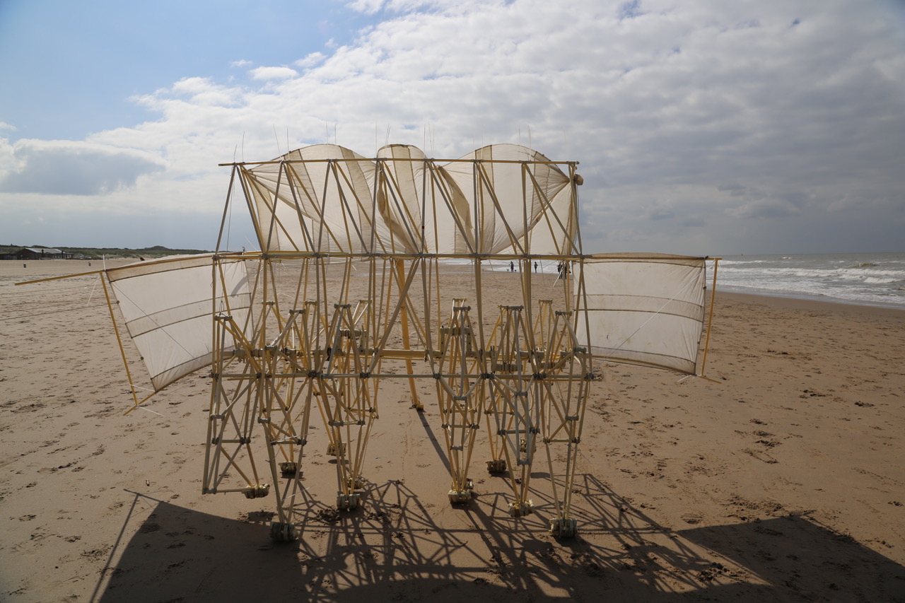 Der Künstler Theo Jansen baut „Strandtiere“, die laufen können – ohne Benzin oder Batterie. Das Wesen, das nun in der Kunsthalle Barmen zu sehen ist, heißt Ordis. Ordis hat Segel, die den Wind – effort – einfangen, dadurch beginnen die vielen Teile zusammen zu arbeiten und die Energie weiterzugeben: eine Bewegung – flow –entsteht. // Foto Theo Jansen