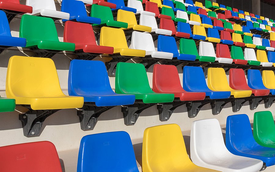 Bunte Sitzreihen in einer Sportarena – ein Symbol für Vielfalt, die im Vereinssport noch nicht überall gelebt wird. // Foto aitorserra - stock.adobe.com