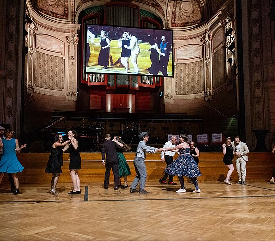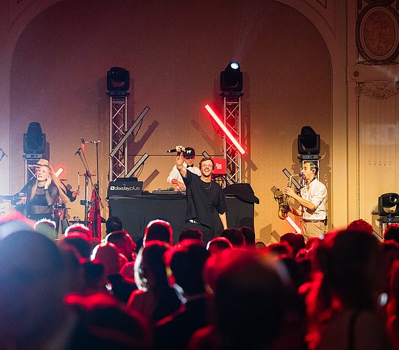 Ein fester Bestandteil war auch in diesem Jahr wieder die Formation „4 to the bar“, die im Mahler Saal mit ihrem südamerikanisch inspirierten Mix aus Jazz und Tanzmusik begeisterte. Für Clubfeeling bis in die späten Stunden waren im Mendelssohn Saal „DEEJAY plus“ und im Rossini DJ Louis zuständig.