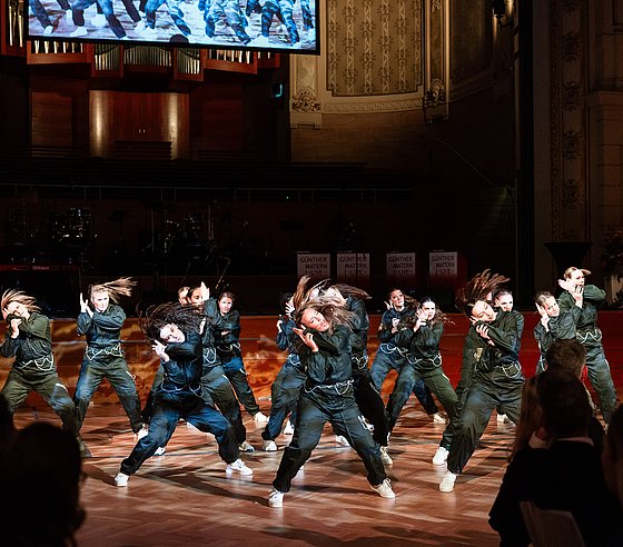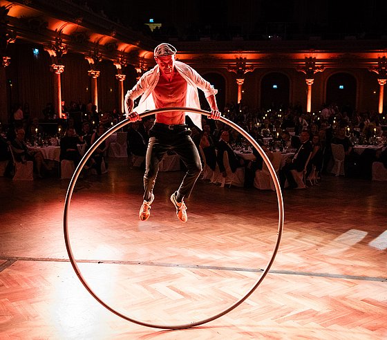 Die Tanzpausen wurden von eindrucksvollen Showacts gestaltet: der UniChor unter der Leitung von Christoph Spengler, die Hip Hop Show „Crewunited“ der Tanzschule Schäfer sowie Herr Benedict mit seiner Akrobatik am CyrWheel sorgten für beste Unterhaltung.