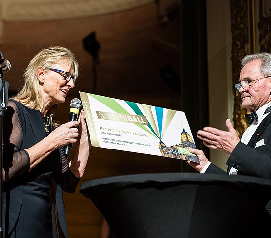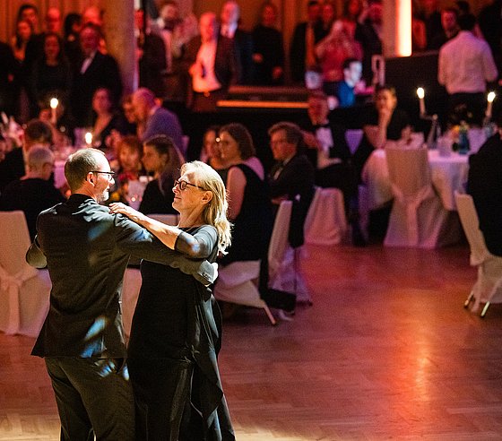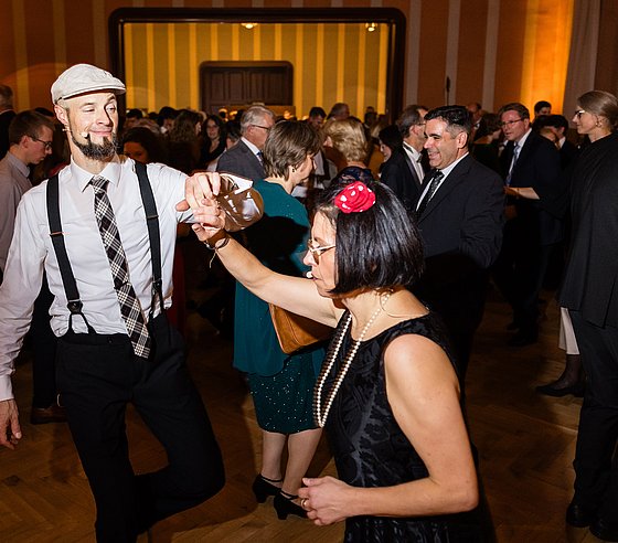 Die Ballnacht begann mit der Eröffnung durch Rektorin Prof. Dr. Birgitta Wolff. Anschließend spannte Günther Matern mit seinem Tanzorchester einen musikalischen Bogen von elegantem Walzer bis rhythmischer Salsa, von Discofox bis Rock’n’Roll und sorgte dafür, dass die Tanzfläche im Großen Saal durchgehend gut gefüllt war.