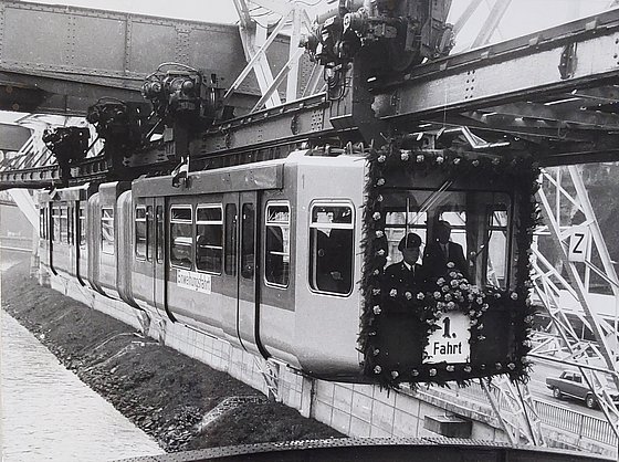 Ausstellung Schwebebahn, Erste Fahrt 1972, Foto: Kurt Keil Sammlung, KKS-E-0983, Universitätsarchiv Wuppertal