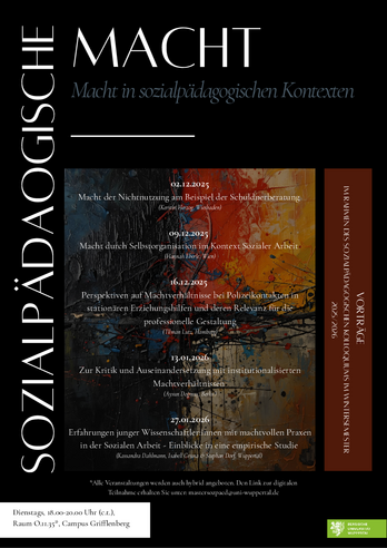 Die Veranstaltung findet im Rahmen des Sozialpädagogischen Kolloquiums im Wintersemester 2025/26 „Sozialpädagogische Macht – Macht in sozialpädagogischen Kontexten“ statt.