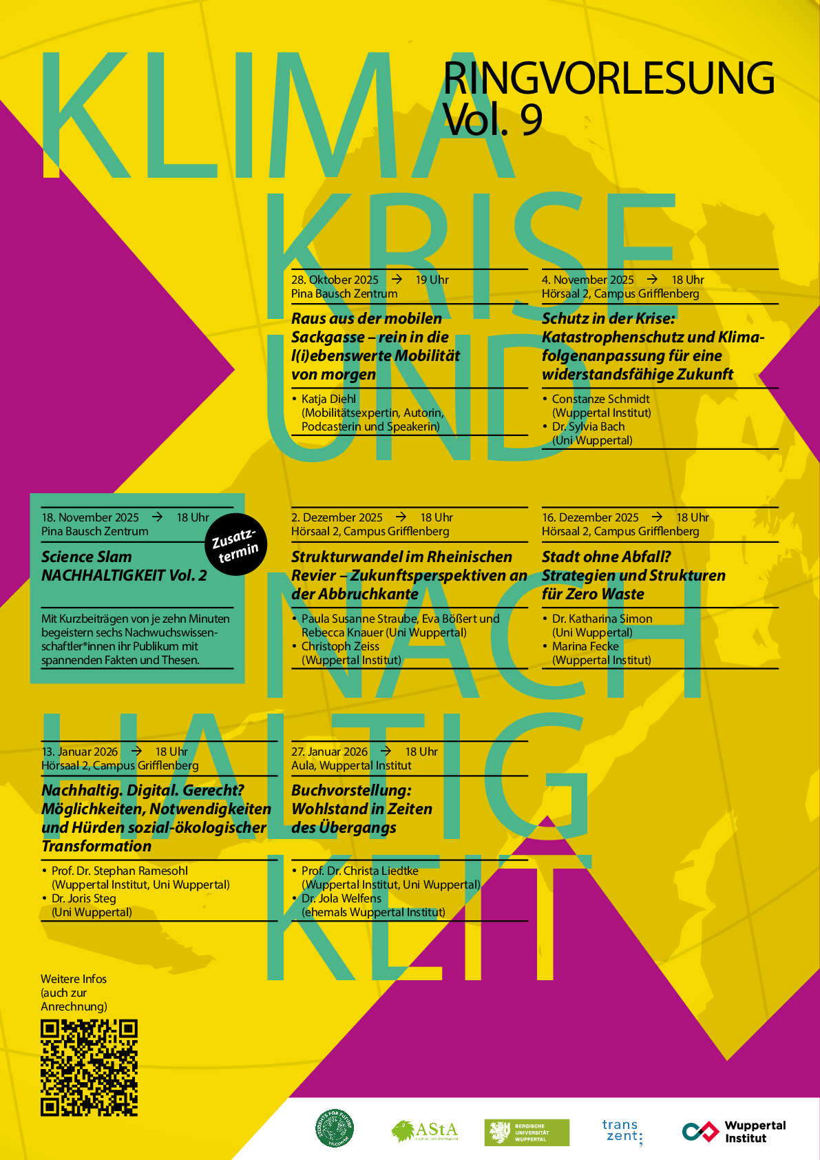 Weitere Infos, auch zu Anrechnungsmöglichkeiten, unter: https://transzent.uni-wuppertal.de/de/lehre/ringvorlesung-klimakrise-nachhaltigkeit/