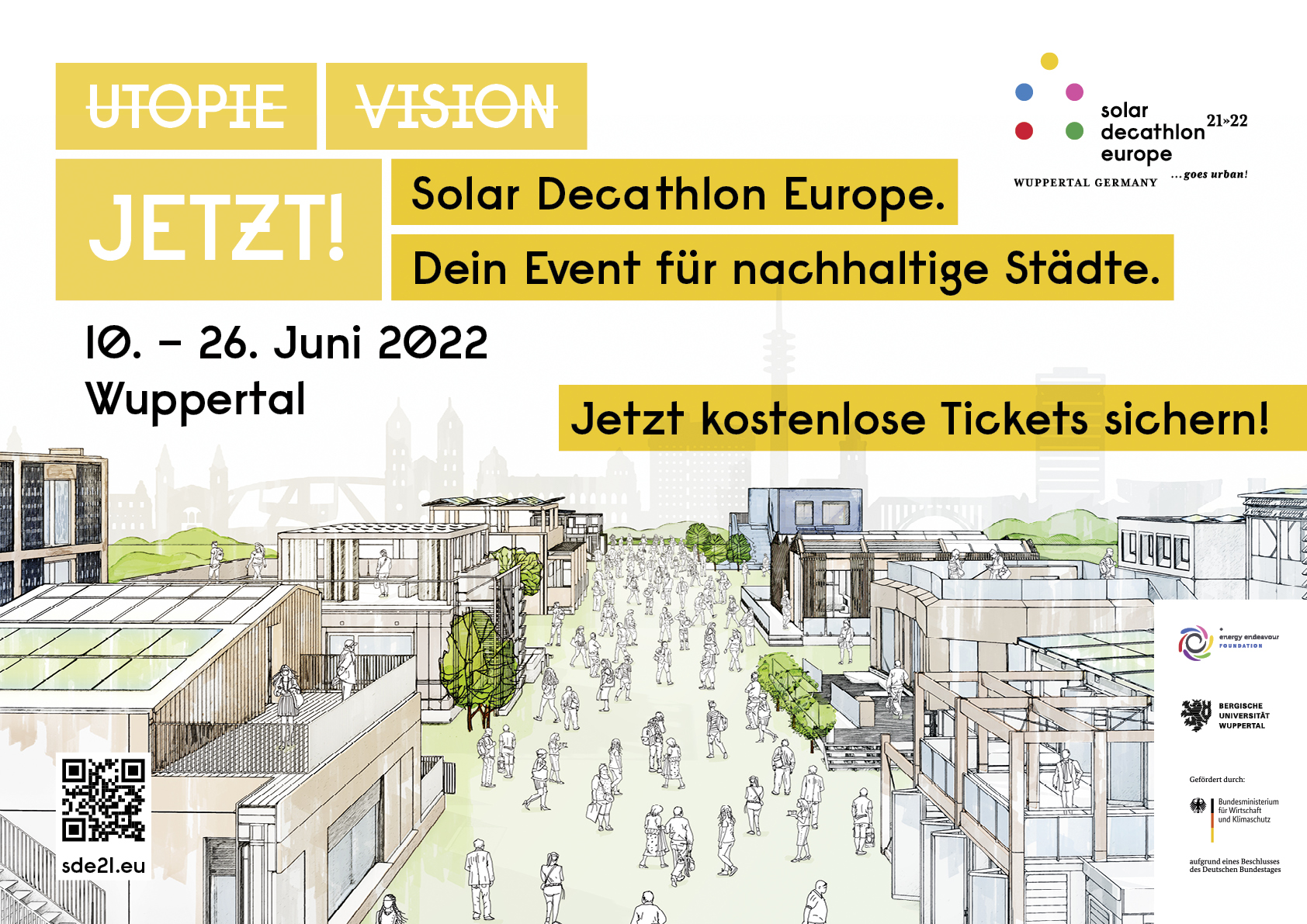 Der Solar Decathlon ist der weltweit größte universitäre Wettbewerb für nachhaltiges Bauen und Wohnen. Seit zwanzig Jahren begeistert er Millionen Menschen mit innovativen Gebäuden zum Anfassen und hochkarätigen Events. Mit dem Solar Decathlon Europe 21/22 (SDE 21/22) in Wuppertal findet der Wettbewerb das erste Mal in Deutschland statt.