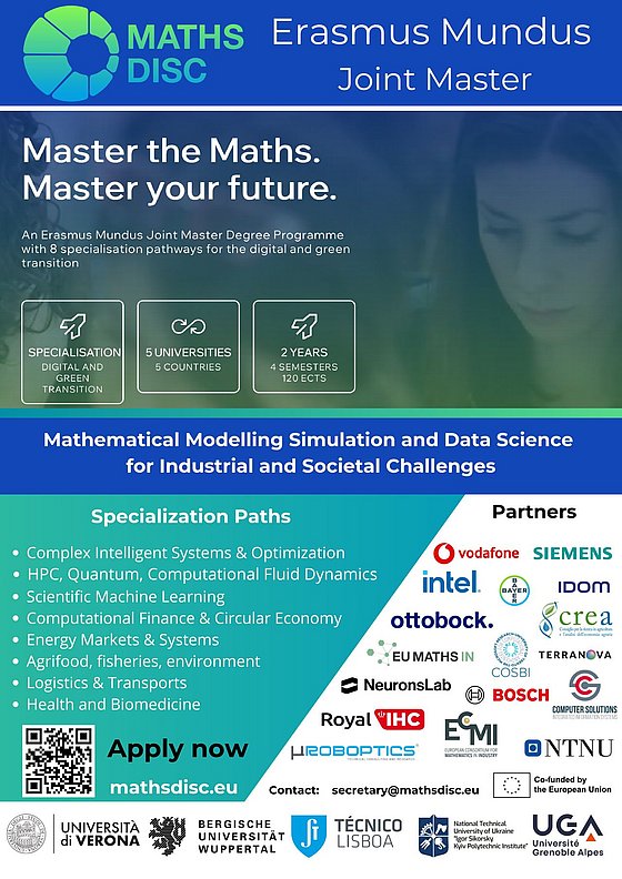 The programme comprises eight specialisation paths in key future fields of digital and ecological transformation. After the first semester, students choose their specialisation and the partner university for the third and fourth semesters. The MATHS DISC committee closely supervises the individual course of study.