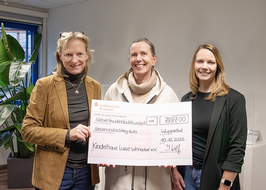 University Rector Prof. Dr Birgitta Wolff presented the cheque for 7,887 euros to Kerstin Spitzl today. Kinderhaus Luise Winnacker e. V. was delighted with the support: "The funds will go directly to projects that give children in Wuppertal access to education, support and reliable carers.