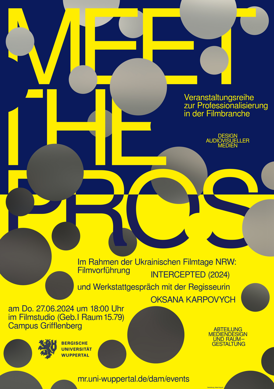 The Audiovisual Media Design degree programme regularly presents various events and event series. Meet the Pros invites exciting guests from the film and creative industries to the University of Wuppertal to share their experiences from their careers and everyday working life and to discuss current developments in their industry with the participants.